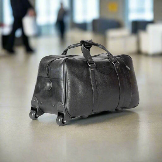 Black Leather Trolley Travelbag