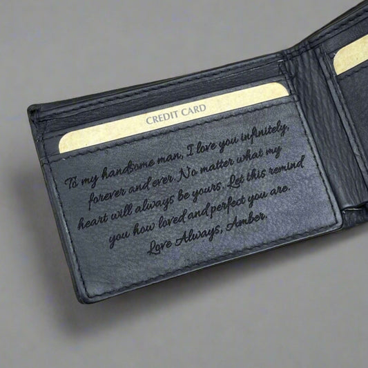 Men's Black Leather Wallet Personalised with Message - KALGHI