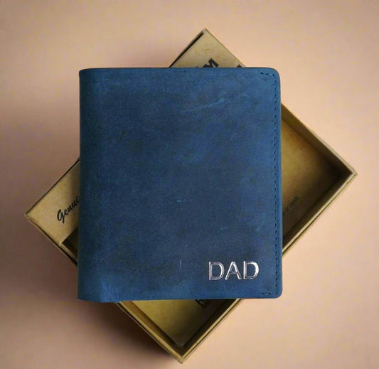 Personalised Slim Leather Mens Wallet- BLUE