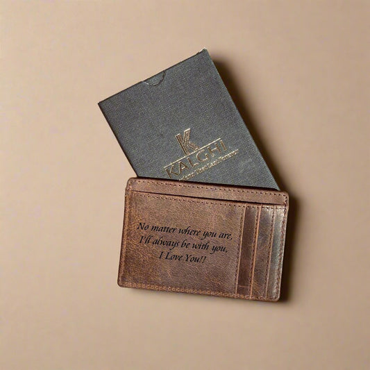 Leather Card Holder with Message and Name - KALGHI